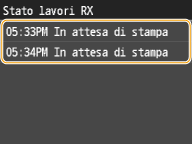 Per stampare i documenti ricevuti in memoria, impostare <Impostazioni blocco in memoria> a <Off>. Vengono stampati tutti i documenti in memoria.