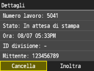 È possibile controllare informazioni dettagliate sui documenti salvati in memoria, compresi numeri di fax del mittente e numero di pagine inviate, nonché eliminare i documenti non necessari.