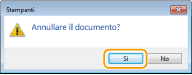 Annullamento da un'applicazioneIn alcune applicazioni, viene visualizzata una schermata come quella seguente. È possibile annullare la stampa facendo clic su [Annulla].