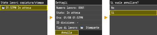 Annullamento dalla IU remotaÈ possibile annullare la stampa dalla pagina [Stato lavoro] sulla IU remota: Controllo dello stato corrente dei documenti di stampa