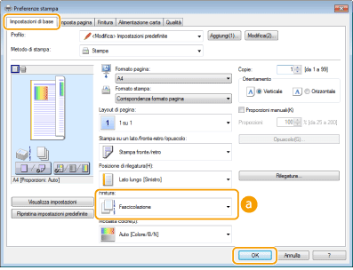 Selezionare [Fascicolazione] o [Raggruppamento] in [Finitura]