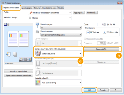 Selezionare [Stampa opuscolo] in [Stampa su un lato/fronte-retro/opuscolo]