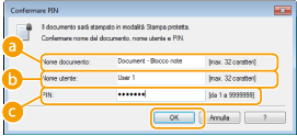Verificare nome documento, nome utente e PIN, quindi fare clic su [OK].
