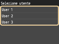 Se nella memoria sono presenti documenti protetti di due o più utenti, viene visualizzata la schermata <Selezione utente> prima della schermata <Selezione file>. Toccare il proprio nome utente.
