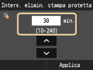 Specificare per quanto tempo la macchina potrà conservare in memoria i documenti protetti, quindi toccare <Applica>.