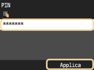 Immettere il PIN con i tasti numerici, quindi toccare <Applica>.