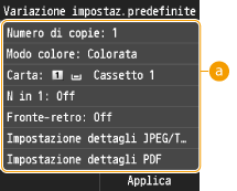 . Se si modificano le impostazioni predefinite in base alle operazioni effettuate con maggiore frequenza, è possibile eliminare la necessità di specificare le stesse impostazioni ogni volta che si stampa.