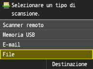 Le destinazioni disponibili per le cartelle condivise e i file server sono limitate alle destinazioni registrate nella Rubrica. Se non vi sono destinazioni registrate, registrare destinazioni nella Rubrica prima di eseguire la scansione su cartelle condivise o file server.