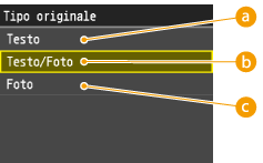 È possibile selezionare la qualità dell'immagine per la scansione in funzione del tipo di documento, ad esempio documenti di solo testo, documenti con diagrammi e grafica o foto di riviste.