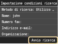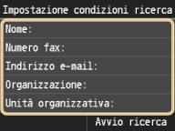 Nomi delle persone, numeri di fax, indirizzi e-mail, nomi di organizzazioni e di divisione sono criteri disponibili per la ricerca delle destinazioni. È possibile specificare più criteri di ricerca contemporaneamente.