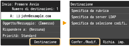 Toccare <Destinazione>  <Confer./Modif.>.