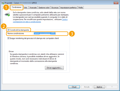 Potrebbe non essere possibile installare i driver in rete in base al sistema operativo e all'architettura bit (32 bit o 64 bit) del server di stampa e dei computer client.