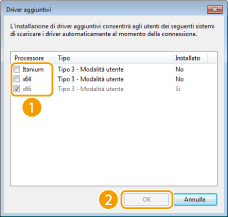 ![]() Selezionare driver aggiuntivi di seguito, in base al sistema operativo del server di stampa.