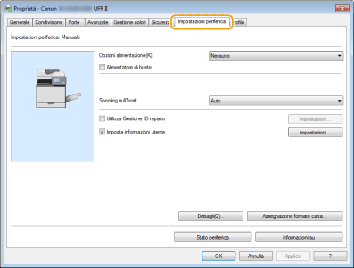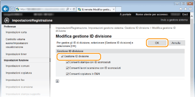 Selezionare la casella di controllo [Utilizza Gestione ID reparto] e fare clic su [Impostazioni] a destra di essa.