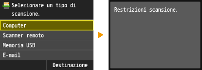 Inserire i limiti superiori in [Numero di pagine]. Se è selezionata la casella di controllo [Restrizioni scansione] la scansione dei documenti su dispositivi di archiviazione USB, e-mail, cartelle condivise e file server è disabilitata. È inoltre possibile disabilitare la scansione dei documenti su computer tramite <Computer> e <Scanner remoto>. Tuttavia, è possibile disabilitare solo la scansione dei documenti su computer per tutti gli utenti (Blocco di lavori quando l'ID reparto è sconosciuto).