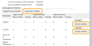 Se si desidera azzerare i conteggi, fare clic sul collegamento di testo corrispondente in [ID divisione] quindi fare clic su [Azzera contatore]