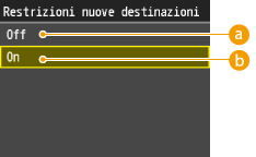 Limitando i numeri di fax che è possibile specificare quando si inviano documenti a quelli già registrati nella Rubrica, a quelli già usati o a quelli che i server LDAP possono cercare, è possibile ridurre la probabilità di specificare destinazioni errate ed evitare agli utenti perdite di informazioni. Quando questa funzione è abilitata, la macchina impedisce agli utenti l'immissione di destinazioni utilizzando i tasti numerici, l'aggiunta di nuovi dati alla Rubrica e la modifica dei dati esistenti nella Rubrica.