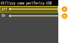 È possibile disabilitare la porta USB sul retro della macchina. Se questa porta è disabilitata, la macchina non può comunicare con un computer tramite USB. Questa impostazione non ha effetto sulla porta USB anteriore, per il collegamento di dispositivi di memoria USB.