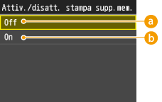 Toccare <Attivazione/disattivazione stampa supporto memoria>.