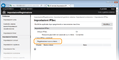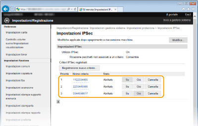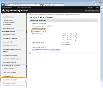 È possibile abilitare o disabilitare la comunicazione IPSec da <Menu>. Utilizzo IPSec