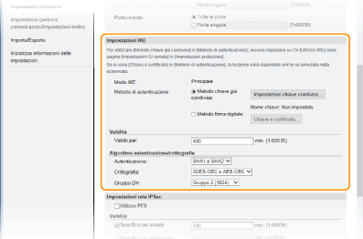 Specificare le impostazioni [Valido per] e [Autenticazione]/[Crittografia]/[Gruppo DH].