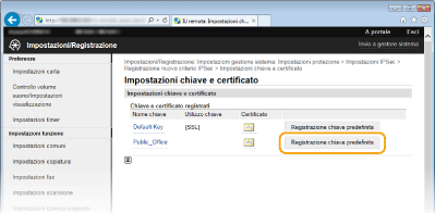 Fare clic su [Registrazione chiave predefinita] a destra della coppia di chiavi che si desidera utilizzare.