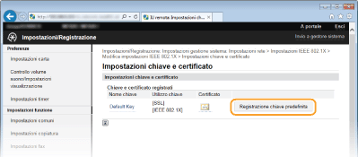 Fare clic su [Registrazione chiave predefinita] a destra della coppia di chiavi che si desidera utilizzare per l'autenticazione.