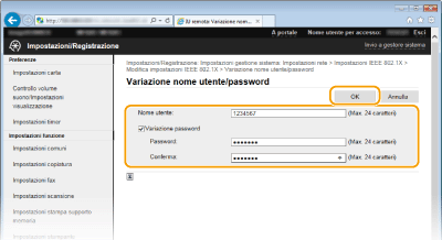 [Nome utente] Immettere fino a 24 caratteri alfanumerici per il nome utente.