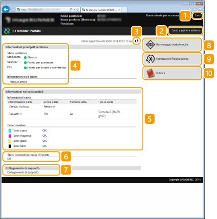 Visualizza il collegamento di supporto specificato in [Informazioni periferica] in [Gestione sistema].