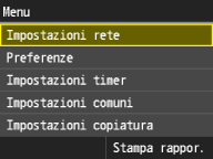 Tutte le impostazioni di rete sono elencate con una breve descrizione. Le impostazioni predefinite sono contrassegnate con una croce (