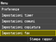 Tutte le impostazioni del fax sono elencate con una breve descrizione. Le impostazioni predefinite sono contrassegnate con una croce (