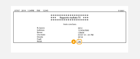 <Rapporto risultato TX fax> oppure <Rapporto risultato TX e-mail/file>