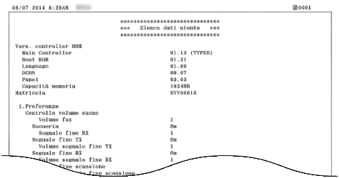 L'<Elenco dati utente> non include gli elenchi di impostazione di <Impostazioni rete> e <Impostazioni gestione sistema>. Per controllare tutte le voci di impostazione, comprese <Impostazioni rete> e <Impostazioni gestione sistema>, stampare l'<Elenco dati gestore sistema>.