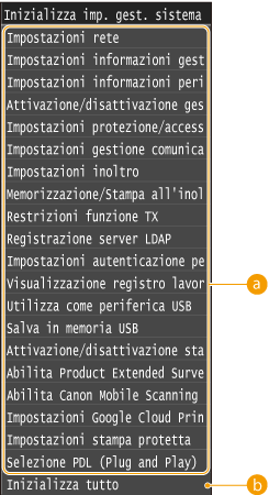 <Impostazioni rete> <Inizializza impostazioni rete> <Sì> quindi riavviare la macchina. |