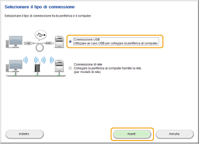Selezionare [Connessione USB], quindi fare clic su [Avanti].