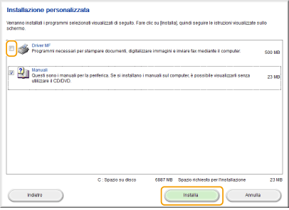 Deselezionare tutte le caselle di controllo tranne [Manuali], quindi fare clic su [Installa].