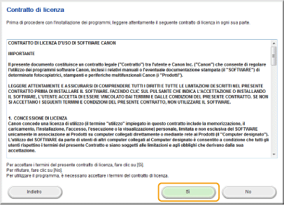 Leggere l'Accordo di licenza e fare clic su [Sì] per accettare.