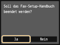 Wenn Sie auf dem Bildschirm für die Faxeinrichtung zuvor <Später einrichten> ausgewählt haben ( Speichern der Faxnummer und des Gerätenamens), tippen Sie auf <Menü>  <Faxeinstellungen>  <Fax-Setup-Handbuch>, um den Bildschirm für die Faxeinrichtung anzuzeigen.
