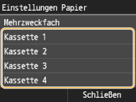 Für Papier, das nicht automatisch erkannt wird, z. B. LGL oder EXEC, geben Sie das Papier vorab mit <Liste Papierformat 1 für Erkennung> oder <Liste Papierformat 2 für Erkennung> an.