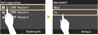abbrechen möchten, tippen Sie auf dem Bildschirm auf <Abbrechen>, oder drücken Sie auf dem Bedienfeld die Taste