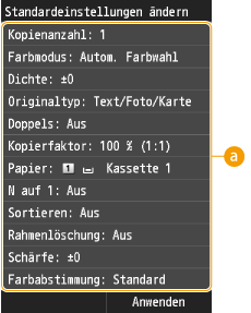 drücken. Wenn Sie diese Standardeinstellungen gemäß Ihren Anforderungen ändern, brauchen Sie beim Kopieren nicht jedes Mal die gewünschten Einstellungen erneut vorzunehmen.