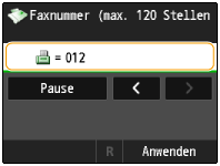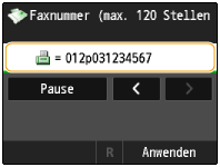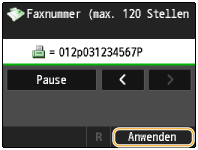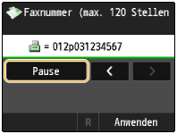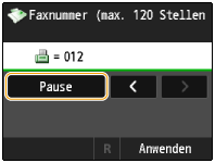 Tippen Sie auf <Pause>, um am Ende der Faxnummer erforderlichenfalls eine Pause einzufügen.