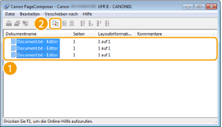 Mit Canon PageComposer können Sie mehrere Dokumente zu einem Druckauftrag zusammenfassen und diesen mit bestimmten Druckeinstellungen drucken. Mit dieser Funktion können Sie beispielsweise Dokumente, die mit unterschiedlichen Anwendungen erstellt wurden, zusammenfassen und alle Seiten im selben Papierformat drucken.
