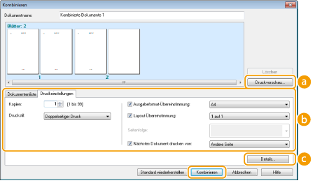 Ändern Sie gegebenenfalls die Einstellungen, und klicken Sie auf [Kombinieren].