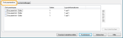 Wählen Sie aus der Liste [Dokumentname] die zusammenzufassenden Dokumente aus, und klicken Sie auf