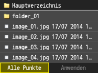 Sie können von der Anzeigemethode <Details> (Dateinamen und Änderungsdaten) zu <Bilder> (Vorschau) wechseln. Wenn Sie eine Vorschau der Bilder anzeigen, können Sie den Dateiinhalt prüfen, bevor Sie eine Datei für das Drucken auswählen.