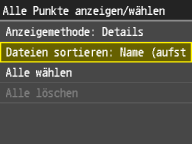 Sie können eine Sortiereinstellung wie <Name (aufsteigend)> oder <Datum/Zeit (aufsteigend)> als Standardeinstellung für die Sortierreihenfolge der Dateien festlegen.