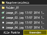 Wenn Sie vor dem Tippen auf <Alle Punkte> eine Datei ausgewählt haben, können Sie nur Dateien mit demselben Format auswählen.