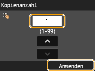 Legen Sie die Anzahl der Kopien zwischen 1 und 99 fest. Geben Sie mit