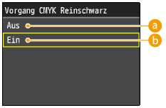 In Kombination mit bestimmten Einstellungen werden monochrome Daten (C=M=Y=0) möglicherweise nur mit dem schwarzen Toner (K) gedruckt, auch wenn <Aus> ausgewählt wurde. Im Folgenden finden Sie Beispiele.